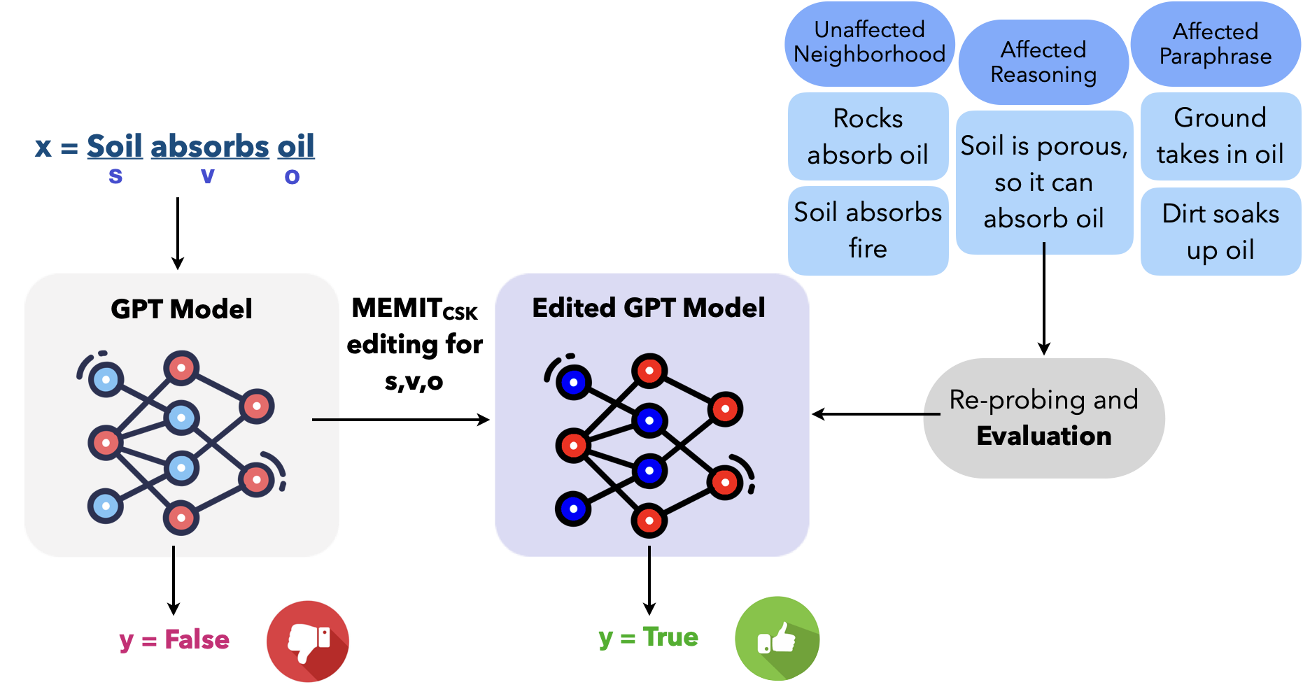 We observed a strong correlation between commonsense judgments and early layer MLP parameters in GPT-2 models. Inspired by that, we proposed MEMITCSK , a model parameter editing strategy to edit commonsense mistakes in GPT-2 Large and XL models that outperform baseline fine-tuning strategies by more than 10.5% accuracy on PEP3k and 20Q datasets. For evaluation, we constructed a dataset of 21000 challenging commonsense statements for model editing evaluation using GPT-3.